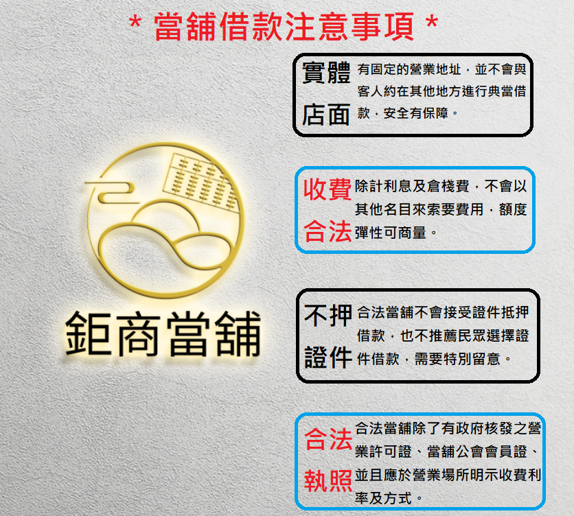近來因社會新聞影響,導致民眾對於當鋪借款總是會與地下錢莊聯想在一起,其實這是...